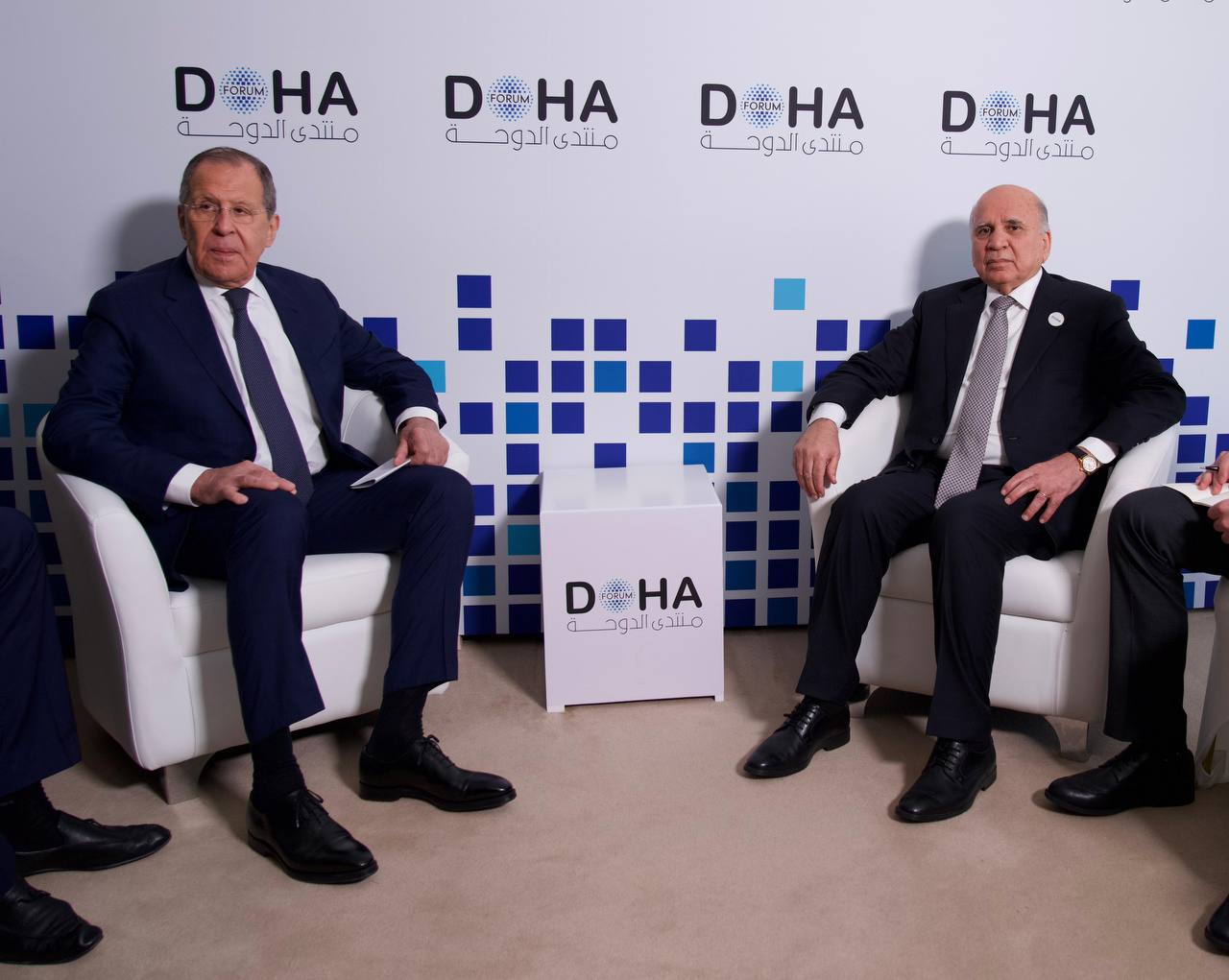 بحث نائب رئيس مجلس الوزراء ووزير الخارجية العراقي فؤاد حسين، اليوم السبت، مع وزير الخارجية الروسي سيرجي لافروف في العاصمة القطرية الدوحة، تطورات الأوضاع في سوريا، حيث تم التأكيد على خطورة انعكاسات هذه الأوضاع على أمن المنطقة.
