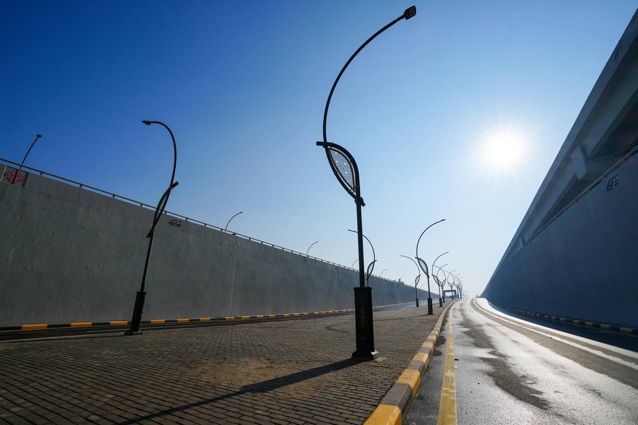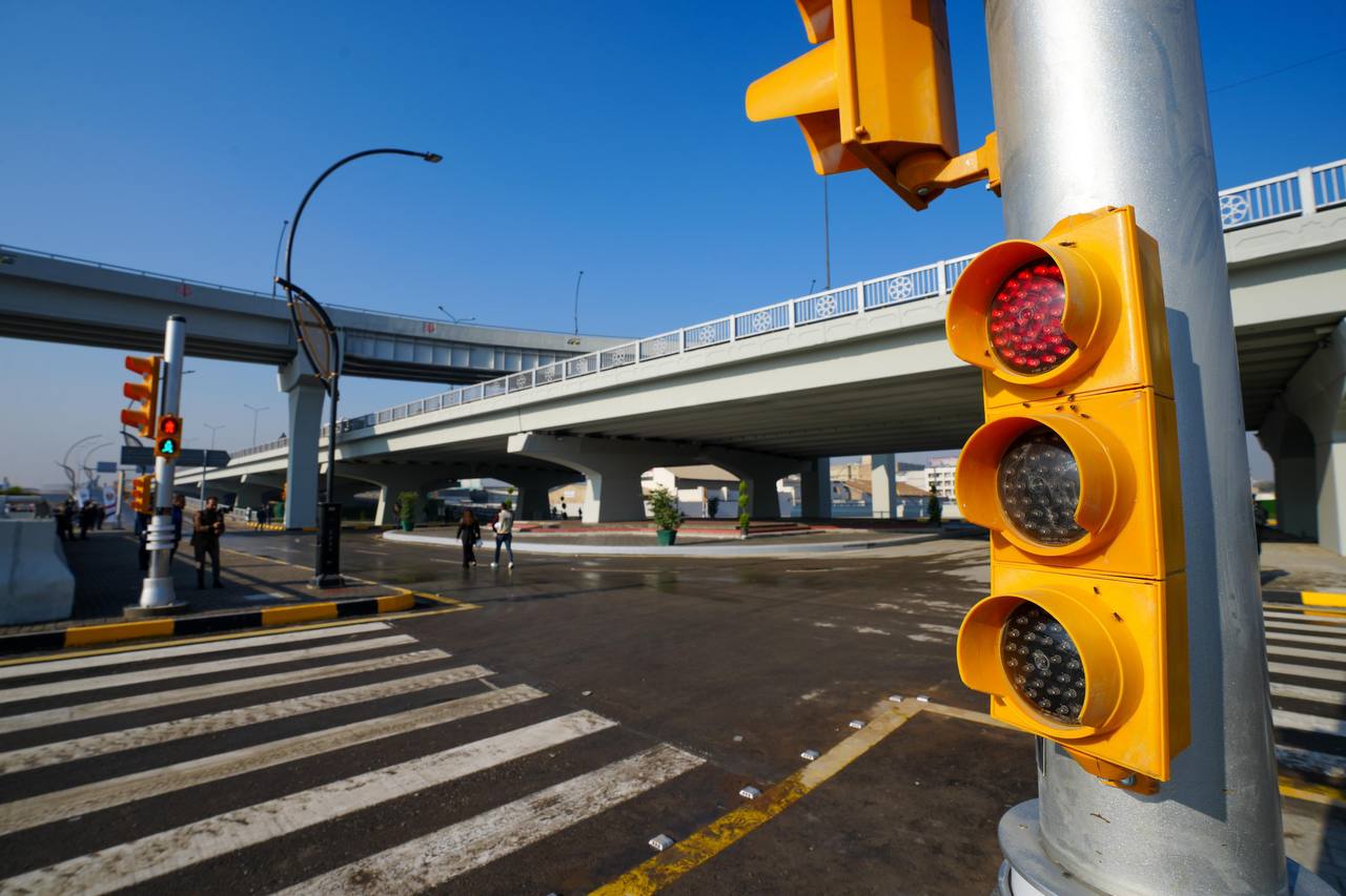 كما تم تجهيز التقاطعات بإشارات ضوئية مع العلامات المرورية المطلوبة كافة لتأمين السلامة العامة وتنظيم الحركة المرورية.