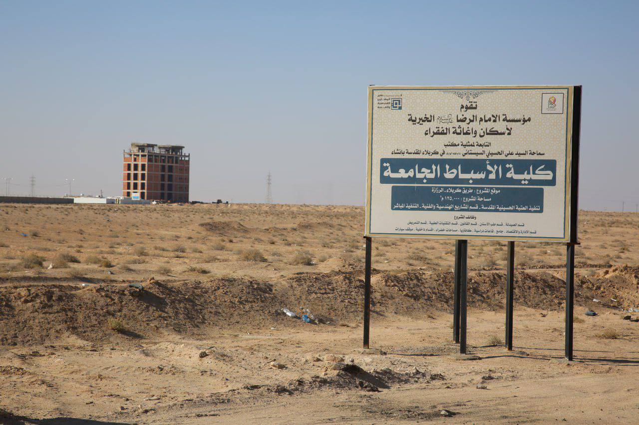كشفت مؤسسة الإمام الرضا التابعة لمكتب المرجع الديني علي السيستاني في كربلاء، عن تسارع وتيرة العمل في مشروع "كلية الأسباط الجامعة" المخصصة للأيتام، والتي تضم ستة أقسام طبية وعلمية وإدارية.