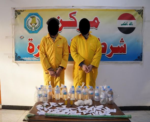 وأضاف البيان أنه تم تنظيم محضر ضبط أصولي بالمواد المصادرة، وإيداع المتهمين التوقيف وفق المادة 456 من قانون العقوبات العراقي، مع اتخاذ كافة الإجراءات القانونية بحقهما.