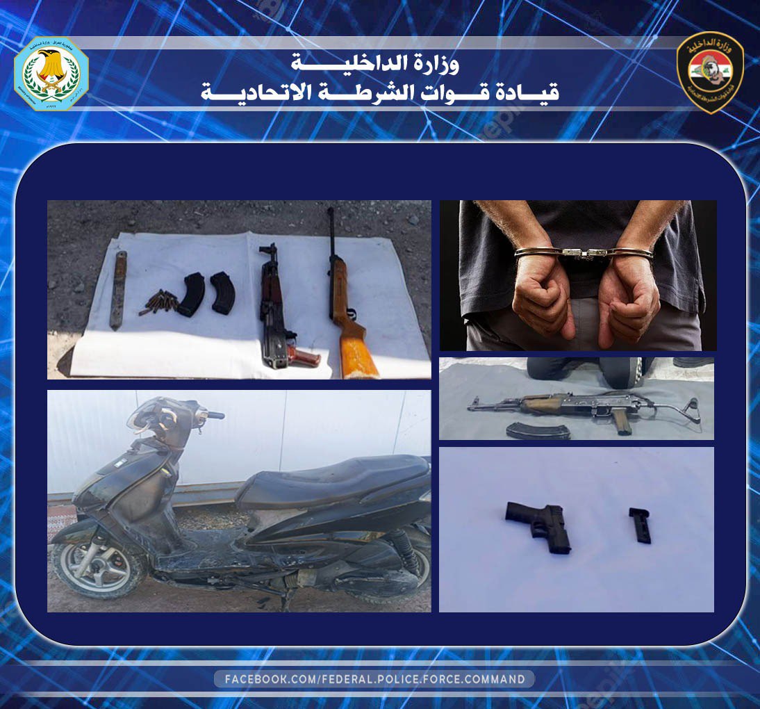 وقالت وزارة الداخلية في بيان تلقاه كلمة الإخباري: إنه "بجهد أمني واستخباري، نفّذت قطعات الفرقة الخامسة في الشرطة الاتحادية، عمليات أمنية متميزة، تم خلالها القبض على (9) متهمين وفق أحكام قانونية مختلفة تضمنت (سرقة، نصب واحتيال، مشاجرة، إطلاق نار، تهديد، حيازة أسلحة، ساحات وقوف غير مجازة)، في مناطق ( الحسينية، الدسيم، العماري، حي طارق، جميلة) ببغداد، مع ضبط (بندقية كلاشنكوف، مخزن عتاد، دراجة نارية)".