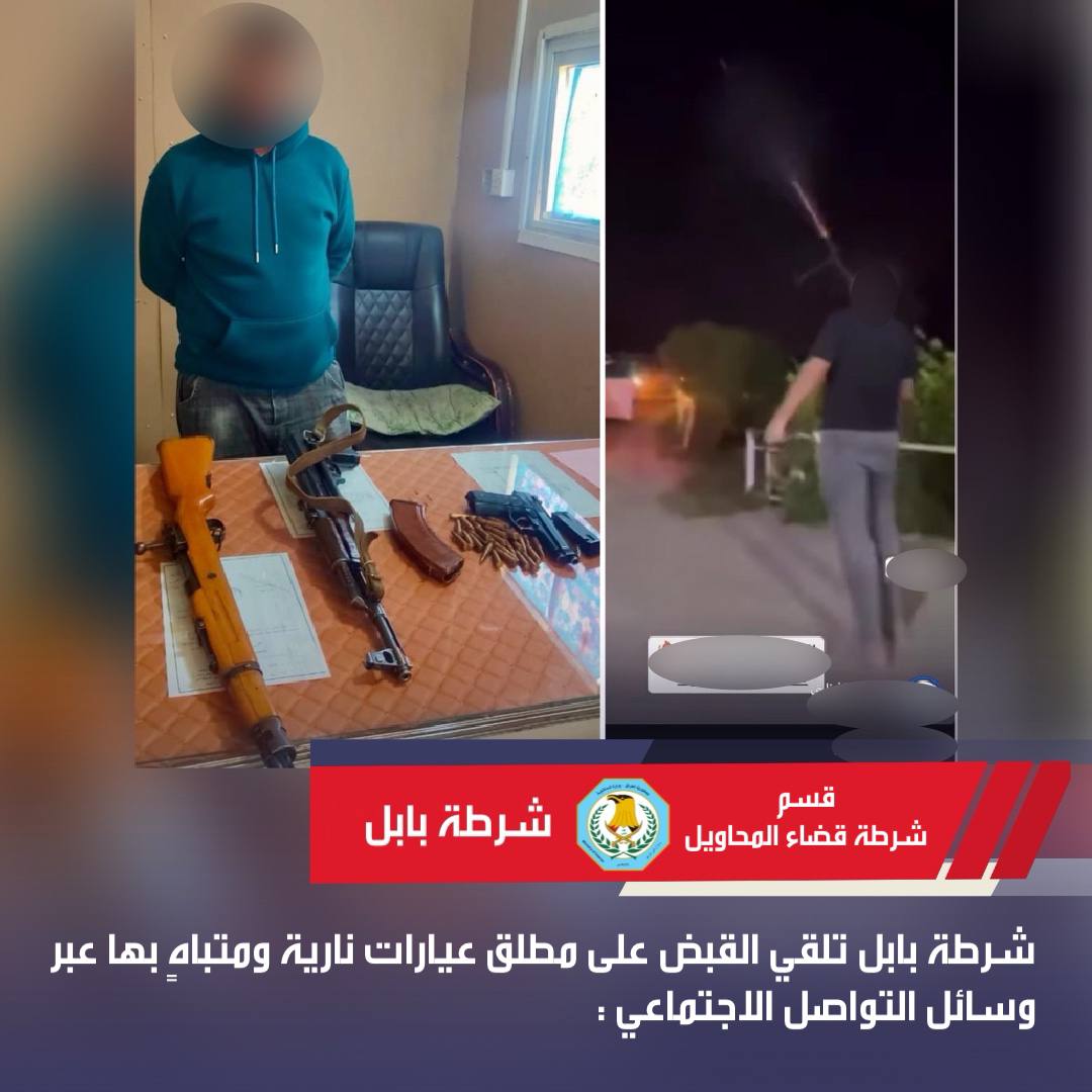 وقال بيان للوزارة تلقاه كلمة الإخباري: إن "مفارز قيادة شرطة محافظة بابل، ممثلة بقسم شرطة قضاء المحاويل، ألقت القبض على مطلق عيارات نارية في الهواء، والذي ظهر في مقطع فيديو مع مجموعة من الأشخاص يتباهون بفعلتهم عبر منصات التواصل الاجتماعي".