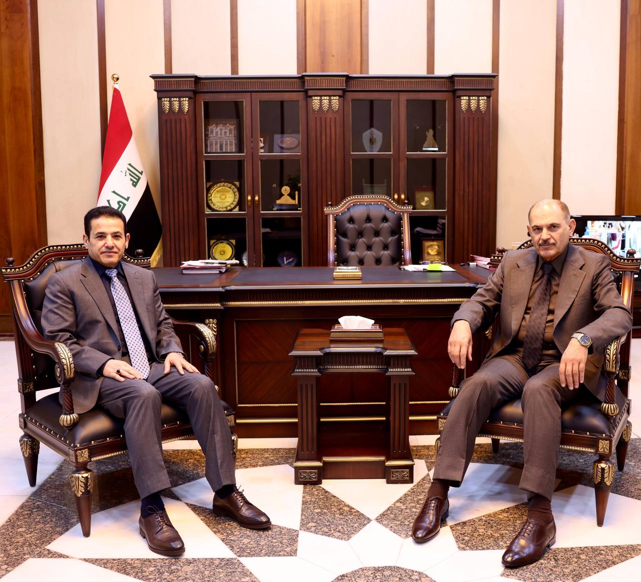 بحث مستشار الأمن القومي قاسم الأعرجي، اليوم الأربعاء، مع رئيس المحكمة الاتحادية العليا ،القاضي جاسم العميري، الملفات والقضايا المشتركة بين المستشارية والمحكمة الاتحادية العليا، وبما يعزز من دور القضاء العراقي.