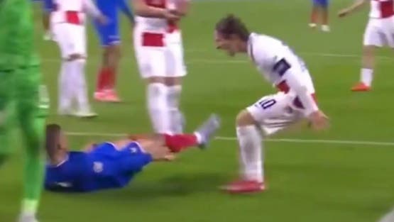لكن مهاجم فرنسا سقط على الأرض رغم ذلك، وأعرب قائد كرواتيا عن مشاعره وركض على الفور نحو مبابي ووبخه عندما كان مستلقيا على الأرض، ابتسم بعدها المهاجم الفرنسي، بينما واصل مودريتش الحديث مع الحكام، مشيرا بوضوح إلى أن مبابي كان يستحق على الأقل الحصول على بطاقة صفراء بسبب التمثيل للحصول على ركلة جزاء.