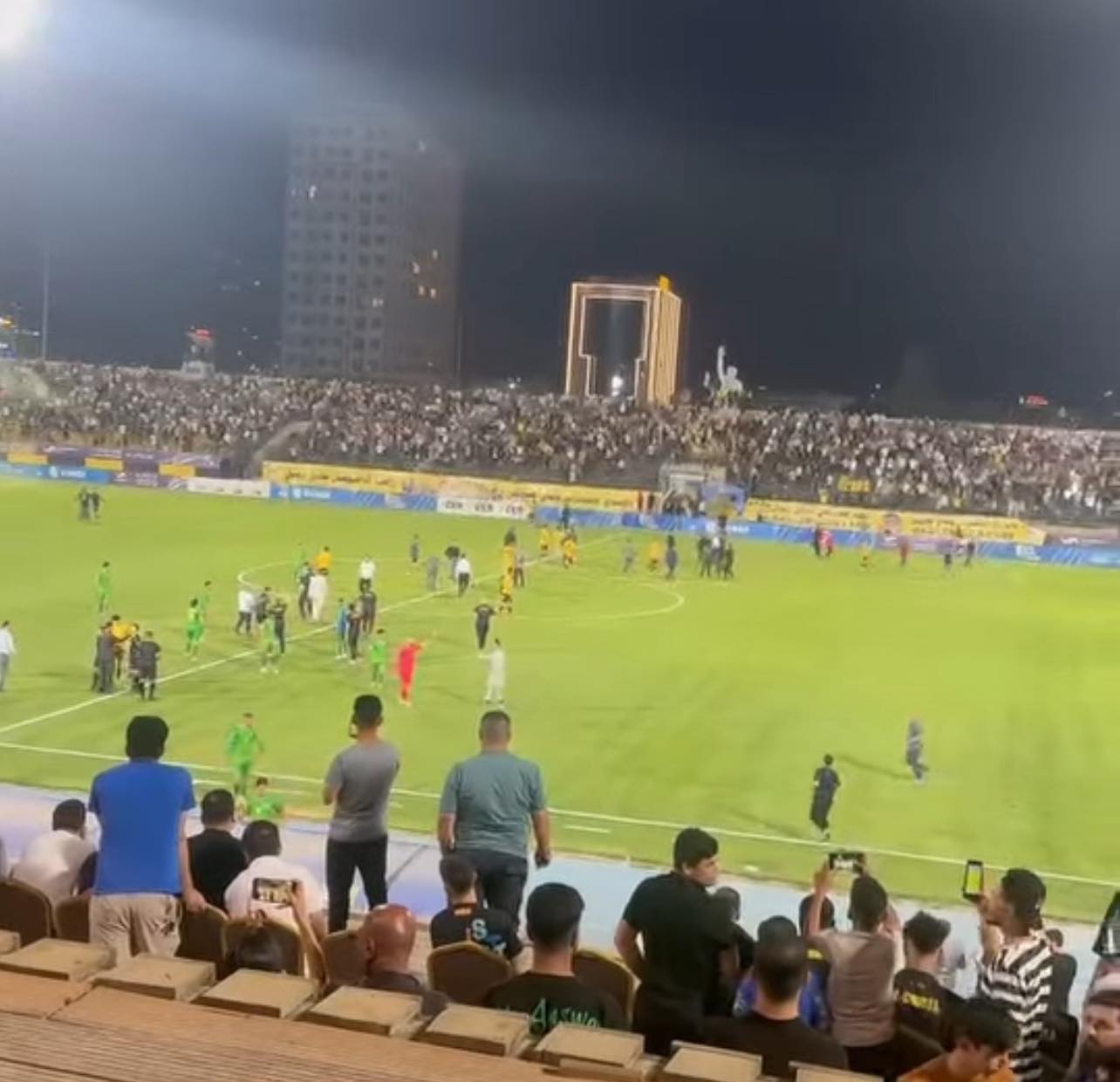 كما أشار التقرير إلى أن "مجموعة من جماهير أربيل، تتراوح بين 50 إلى 70 متفرجًا، اقتحمت أرض الملعب وكسروا السياج خلف المرمى، مما استدعى تدخل قوات الأمن لإخراجهم، وتسبب في توقف المباراة لمدة 11 دقيقة".