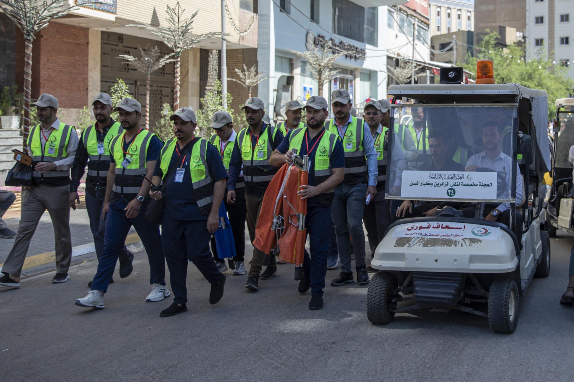 وأضاف أن "فرق المركز الطبية تتواجد في محاور استراتيجية متعددة تشمل شارع القبلة المؤدي لمرقد أبي الفضل العباس، والساحة الوسطية لمنطقة بين الحرمين الشريفين، ومحيط العتبة المقدسة".