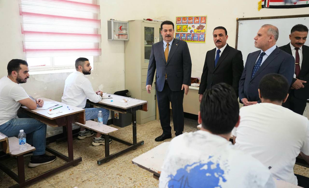 وذكر المكتب الإعلامي لرئيس الوزراء في بيان تلقاه كلمة الإخباري، أن "رئيس الوزراء محمد شياع السوداني، أجرى زيارة الى أحد المراكز الامتحانية في جانب الكرخ من بغداد، تابع خلالها سير أداء امتحانات طلبة السادس الإعدادي بفرعيه والدراسة المهنية، يرافقه السيد وزير التربية".