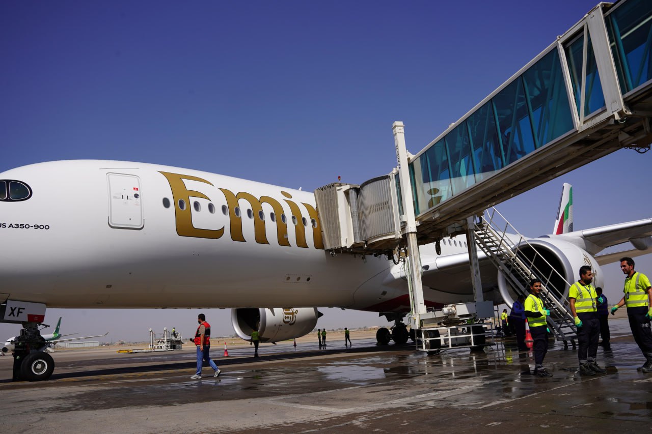 شهد مطار بغداد الدولي، اليوم الاحد، وصول اول رحلة لطائرة ايرباص A350 التابعة لطيران الامارات، في خطوة تعد محطة مهمة نحو تعزيز العمليات التشغيلية وتطوير الخدمات المقدمة في المطار.