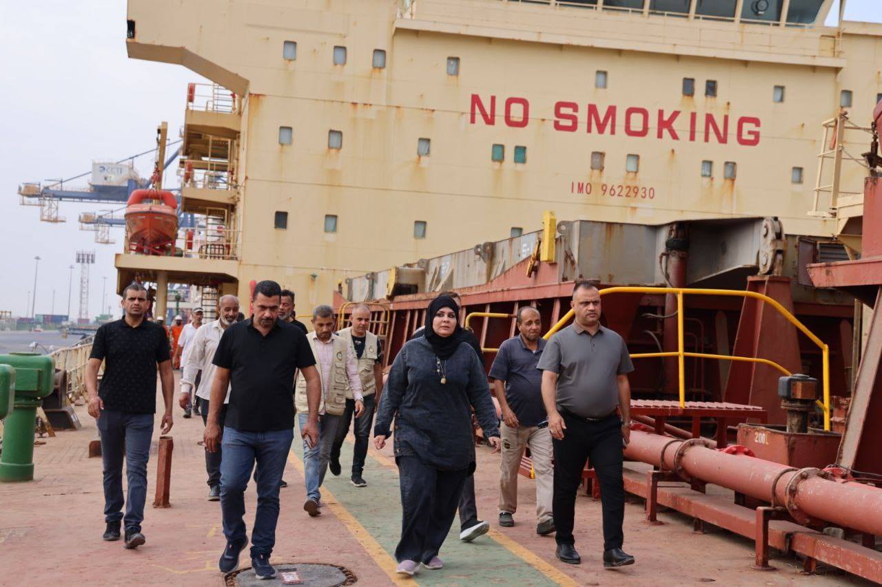 وأضافت بأن "الزيارة شملت الاطلاع بشكل مباشر على حمولات البواخر فور وصولها للميناء، وتم التوجيه بسرعة نقل المواد إلى مخازن الشركة بما ينسجم مع الخطط التي أعدها قسم التسويق لمواكبة ما يرد من مواد غذائية".