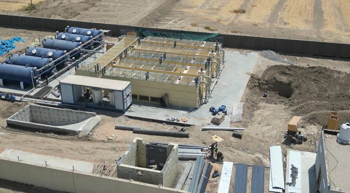 وأضاف أن "المشروع يتألف من خمسة أحواض للترسيب، وحوض للتجميع، وحوض للتغطيس، إضافة إلى ستة فلاتر، وأربع مضخات للدفع، ومضختين لغسيل الأطيان، فضلاً عن بناية خدمية للملاك الإداري والحراس والفنيين، وسياج حماية للمجمع يضم ثلاثة أبواب (خدمية ورئيسية) لدخول الآليات الثقيلة، وهيكل سحب وشبكة أنابيب، ومولد بسعة 600 كيلو فولت، وخزانات وقود، وسقيفة لحماية الأحواض، وبناية خاصة للمحولة وكابينة كهربائية متكاملة، وخزانين للشب، ومنظومة للكلور".