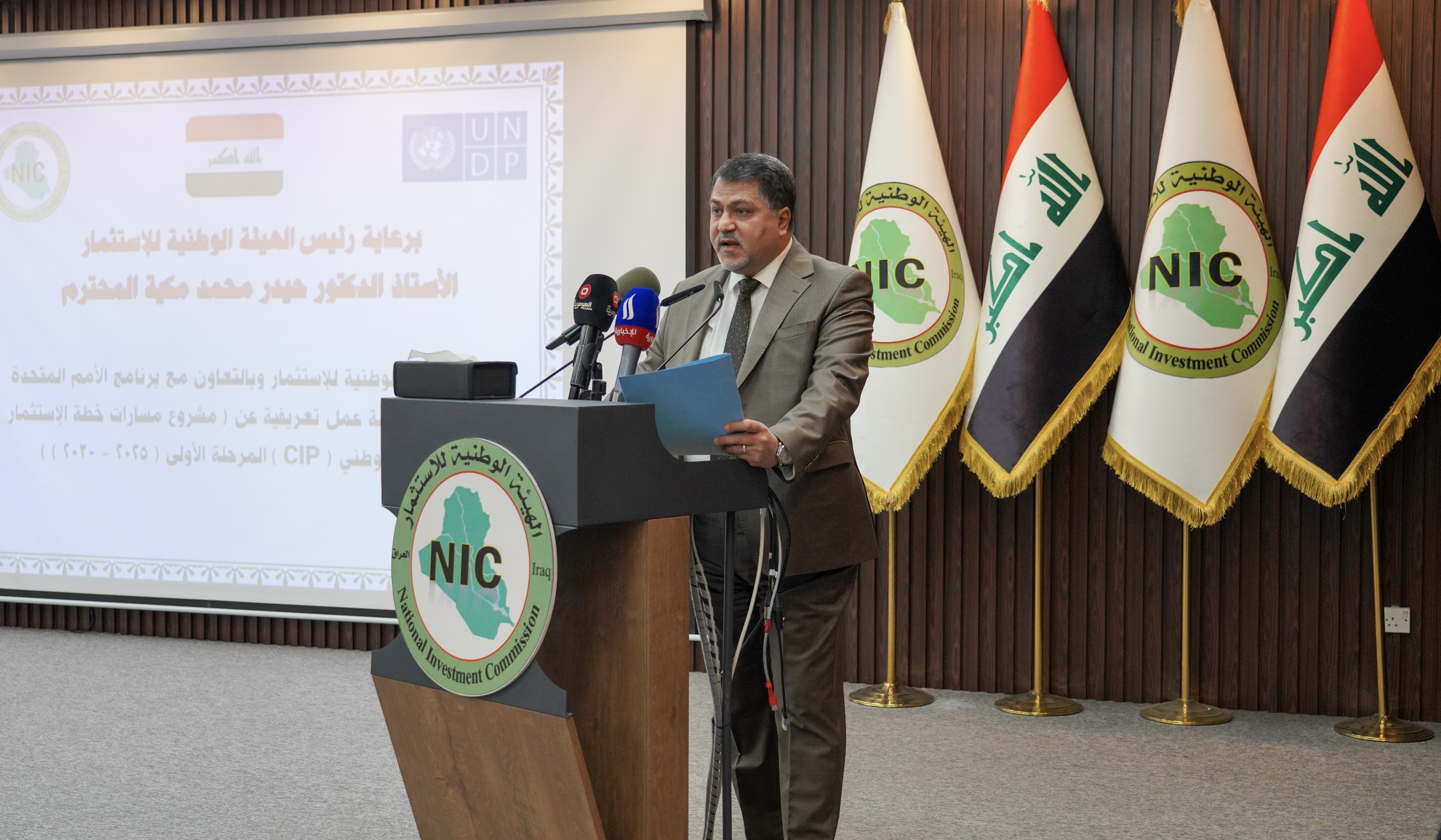 وأكد رئيس الهيئة الوطنية للاستثمار، حيدر محمد مكية، في كلمة له خلال الورشة، أن "مشروع خطة الاستثمار المناخي الوطني (CIP) يمثل أحد المشاريع الاستراتيجية التي تبنتها الحكومة العراقية لمواجهة تحديات التغير المناخي، مشيرًا إلى أن انعكاساته أصبحت واضحة على الموارد المائية والزراعية والبيئة الطبيعية".