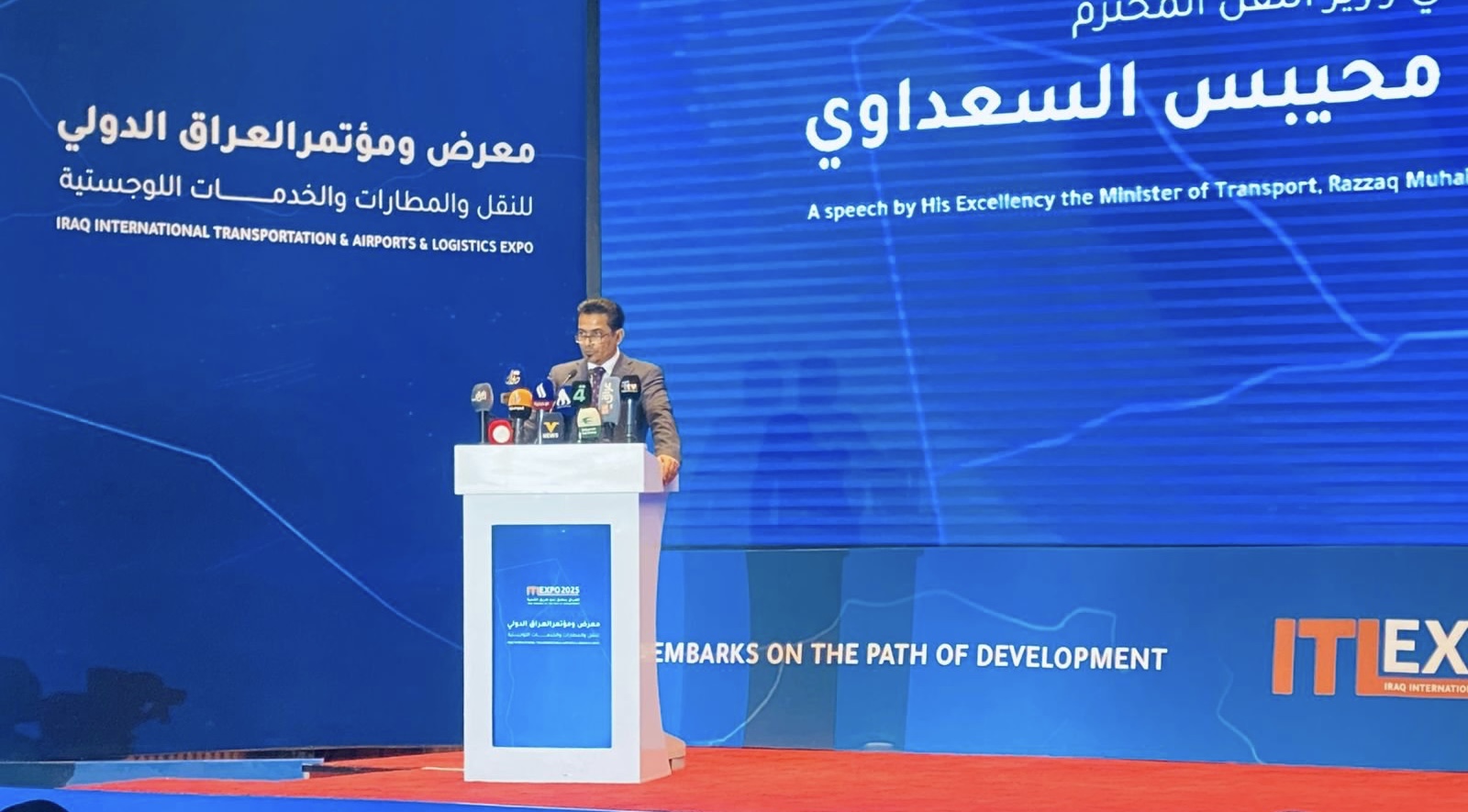 وأشار السعداوي في كلمةٍ له خلال فعاليات معرض العراق الدولي للنقل والطيران والخدمات اللوجستية، والتي تابعها كلمة الإخباري، إلى أن "انضمام العراق إلى منظومة "التير" العالمية يُعد خطوة مهمة تمهّد لمشروع طريق التنمية، الذي وصفه بأنه شريان حياة يربط الشرق بالغرب".