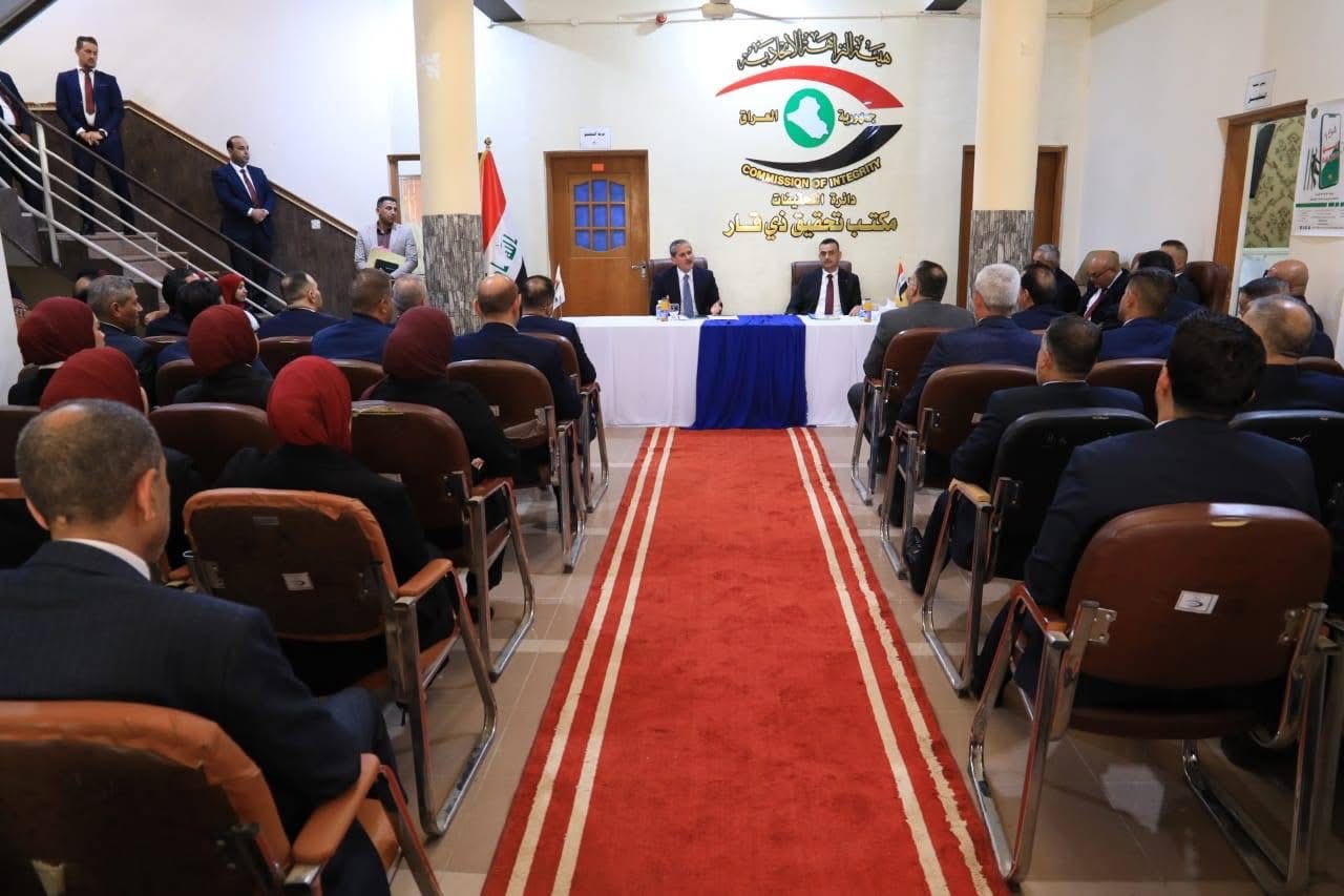 وشدَّد، خلال لقائه على "إدارة ومُنتسبي مكتب تحقيق الهيئة في محافظة ذي قار، شدَّد على أنَّ النهوض بالمحافظة واستمرار عمليات الإعمار والبناء فيها مسؤوليَّة جماعيَّـة تستدعي تعاون جميع الأطراف، لافتاً إلى أن الهيئة تواصل عملها بتنسيق عالٍ مع الجهات القضائيَّة والتشريعيَّة والتنفيذيَّـة؛ لتعزيز الشفافية وترسيخ قيم النزاهة".