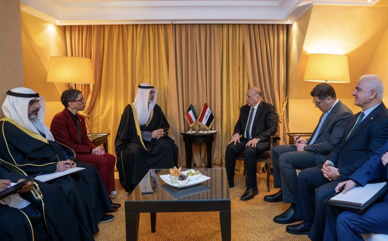 وأضاف البيان أن اللقاء تضمن استعراض مسار العلاقات الثنائية المتينة بين البلدين، والتأكيد على عمق الروابط التاريخية التي تجمع العراق والكويت، فيما أطلع فؤاد حسين نظيره الكويتي على تطورات المشهد السياسي في العراق ومراحل تشكيل الحكومة الجديدة.